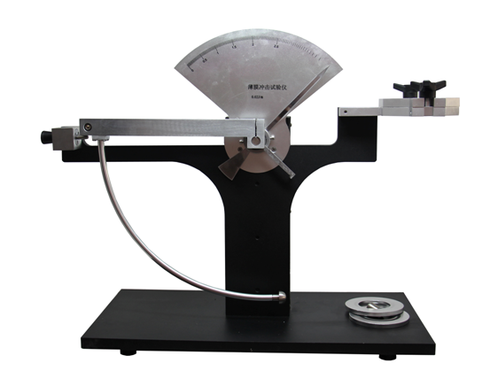 通過半圓球型的沖頭以一定的沖擊速度沖擊并沖破試樣,從而測量出沖頭所消耗的能量,籍此能量來評價薄膜試樣的抗擺錘沖擊能量值。